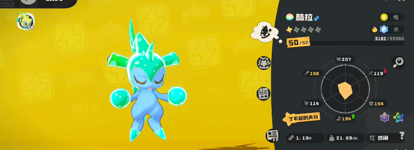 先来介绍一下这个小精灵的基本信息,酷拉入场首回合,选中的技能会被额外释放一次,酷拉的速度资质高达125点,这让他在pvp机制内有了绝对的先手权,而今天小编将带领大家搭配出一个荟萃水酷拉,在战场表现上有绝对优势。