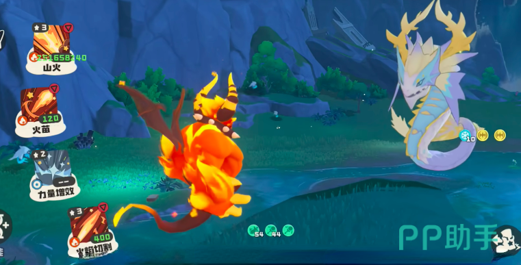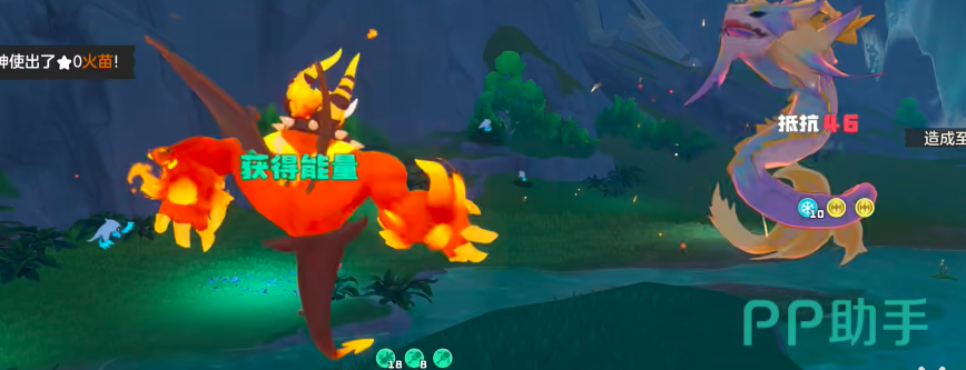 玩家在游戏当中还可以搭配雪灵,这个小精灵一同使用,开局直接丢出雪灵,使boss眩晕。开局第一技能可先使用血灵的热身运动,快速消耗掉boss的血条。然后切换成火神提升威力,现在首领boss的每个技能,最低都是需要12个能量的,但是这只boss最高只有10能量,这是首领boss只能不断聚能,这时就可以直接放心使用火苗给我山火提威力,当玩家的威力叠到1亿左右,就可以直接将山火释放出,不然达到威力上限,就会变成1得不偿失,当山火威力释放的一瞬间,直接秒杀boss。