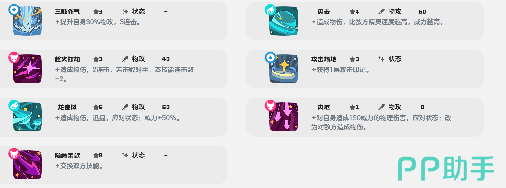 叮叮恶魔的终极技能有灾厄和隐藏条款,灾厄能够对自身造成150威力的物理伤害,而应对状态下则变更为对地方造成同等数值物伤。隐藏条款则交换双方的技能。虽然灾厄看起来有点鸡肋,但叮叮恶魔的打法是需要控制血量来提高输出同时利用吸血能力来回复,因此灾厄在提前创造这一条件,让己方的先手输出更高且能优先得到吸血能力。