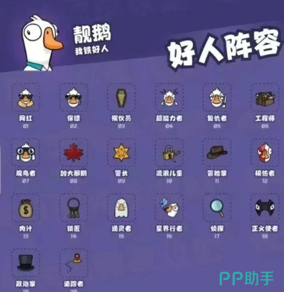 首先就是人数的设计,在游戏中大家是可以4到16人来同时进行的,作为一种派对类型的推理,游戏可以认识到更多的玩家,同时也提供了庞大的地图,还有各种任务以及破坏点,包括特殊的互动区域都是可以来进行冒险的,游戏中的大部分任务都和这几个地点有关,可以更好的进行上手,在开局的过程中是可以来随机分配阵营的,每一个阵营中也会有相应的角色,比如说鹅阵营中的加拿大鹅,它拥有相应的技能,如果自己被刀了,是可以来自动进行报警的,还有一个警长的身份,可以来进行自爆。
