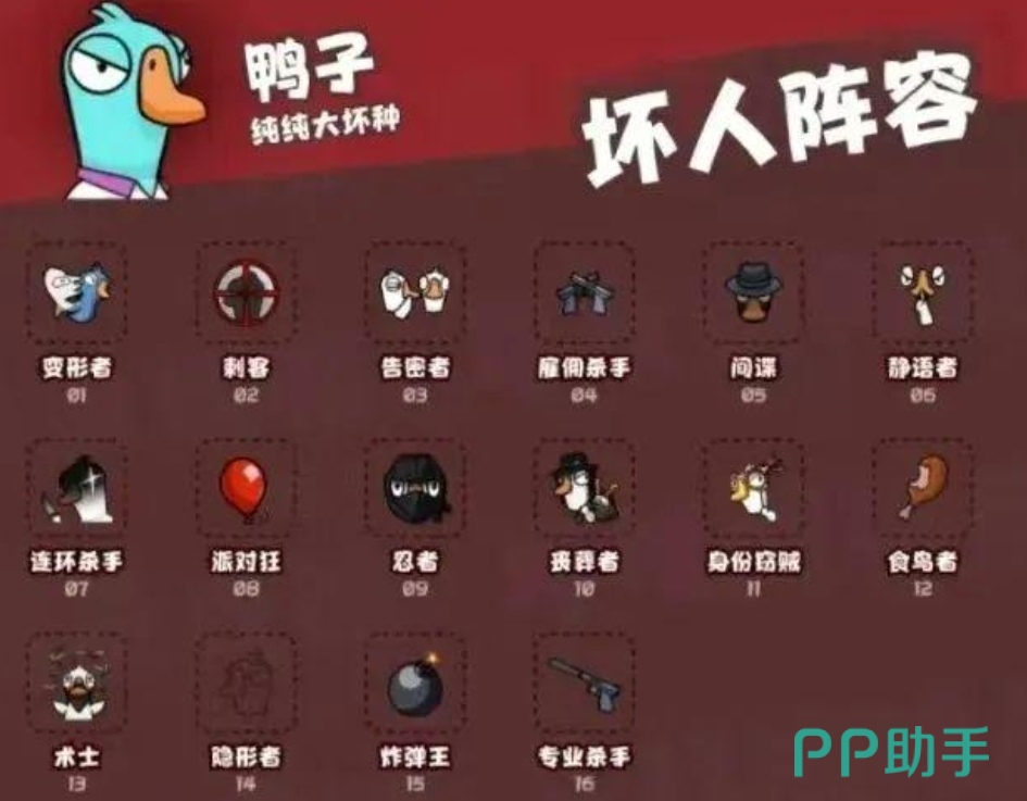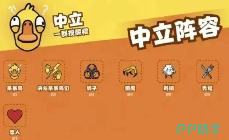 玩家们需要通过完成相应的小任务或者找出隐藏的鸭子,在鸭子阵营中也会有刺客以及专业杀手等身份,大家需要利用自己的技能来混淆视听,保护自己的身份不被发现,除了这两个对立阵营,还会有一个中立的角色,比如说呆呆鸟以及鸽子等,他们也会有相应的获胜条件,需要来完成,在完成任务的过程中,会有一个进度条可以来参考。
