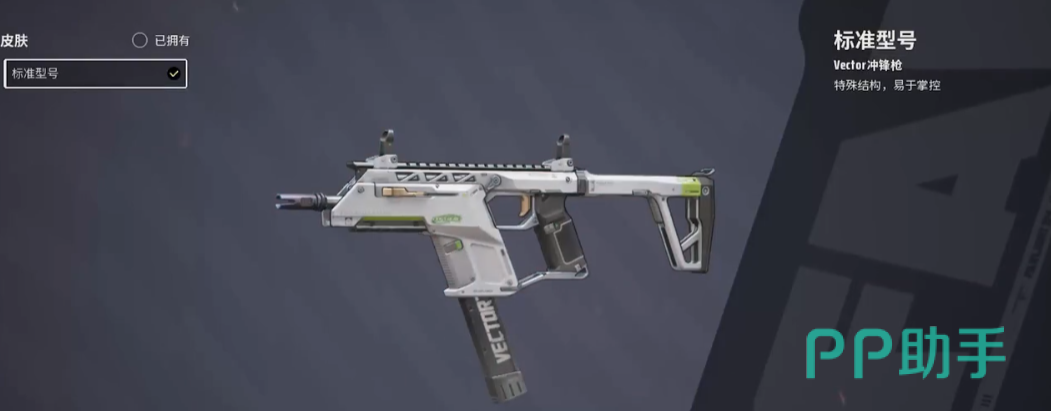 2、vector。射速18.2,最高弹匣容量32,在冲锋枪当中,它拥有非常高的射击速度,而且后坐力很小,非常好去压枪,而且如果是进行腰射,具有能逐步提升精准度的特殊机制,在展开短柄交锋时刻,能更加精准的命中敌人,给自己创造更多的优势。