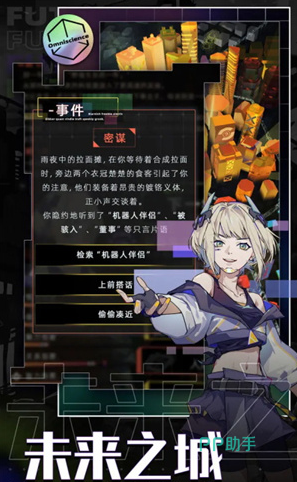 玩家踏入一个未知的未来世界,暂时无法知晓自己确切的身份角色。当玩家置身于这个被霓虹光芒所笼罩的都市中,首要任务便是武装自身,以应对随时可能出现的敌人。游戏将背景设定在科技革命刚刚过去不久的未来时期,这一独特的设定为玩家打开了一扇通往全新可能性的大门,让玩家能够尽情体验与现实不同的生活。玩家拥有充分的自主权,可以随心地规划自己的人生道路。