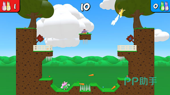 在这款游戏中,大家将化身为一只萌趣搞怪的兔子人,开启一段妙趣横生的冒险之旅。兔子人行动起来十分逗趣,蹦蹦跳跳、翻滚腾挪,一举一动都满是诙谐。游戏关卡丰富多元,有险峻的山坡、晃荡的绳索、移动的平台等,需大家灵活操控、巧妙应对。既能与好友携手合作攻克难关,也可能因相互失误而引发阵阵欢笑,再加上有趣的物理效果和欢快音乐,欢乐氛围直接拉满。