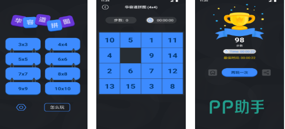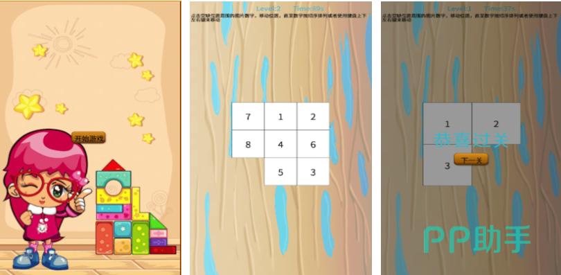 数字华容道这款数字解谜类游戏气氛营造更为轻松,玩家可从最简单的四图模式开始玩逐渐熟悉规则,游戏规则也简单但也集合了华容道精髓,个性化的数字方块移动玩法上手会更为轻松,木质的背景跟卡通画风呈现观赏性毋庸置疑,华容道高手可尝试10X10的最高难度感受华容道魅力,并不存在提示功能需要大家一步步摸索闯关。
