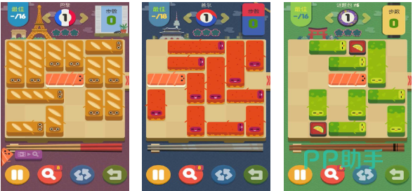 这款解谜类作品还是华容道的规则但主题更特殊,用寿司代替华容道方块的设定也充满新意,各种道具的辅助也让华容道闯关过程更快速,画面呈现绚丽多彩且寿司的造型更加可爱,萌版的视效结合轻松操作更令玩家满意,灵活移动寿司进行闯关的特殊理念也极为有趣,各种食材打造的美味寿司会令人口水直流,各位吃货华容道爱好者都可试试这款解谜作品。