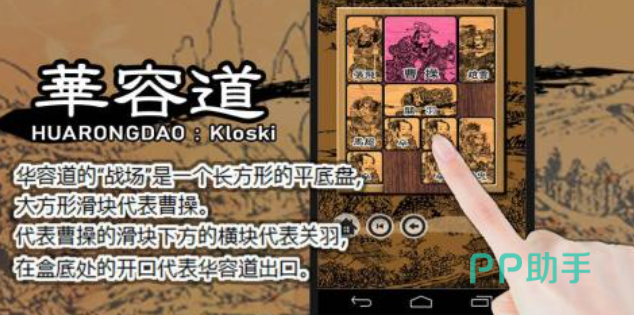 本作算是最基础复古版本的独立华容道游戏,游戏中的方块上都呈现出复古的三国角色立绘,你的任务是不断移动这些武将方块,最终将曹操从地图上解救出来,融合了三国历史和复古画面的游戏理念别具一格,极为基础的华容道模式呈现也增添了代入感,灵活开发智商为曹操找出入口也是唯一的任务。