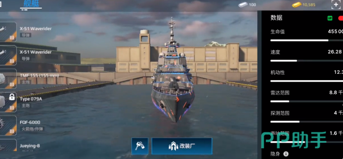 基础的属性还是比较出色的,有455,000的耐久性,另外机动性还有速度都很不错。雷达的距离大概是8.8千米,深大的范围是1.6千米,要说比较遗憾的,就是没有隐身功能。