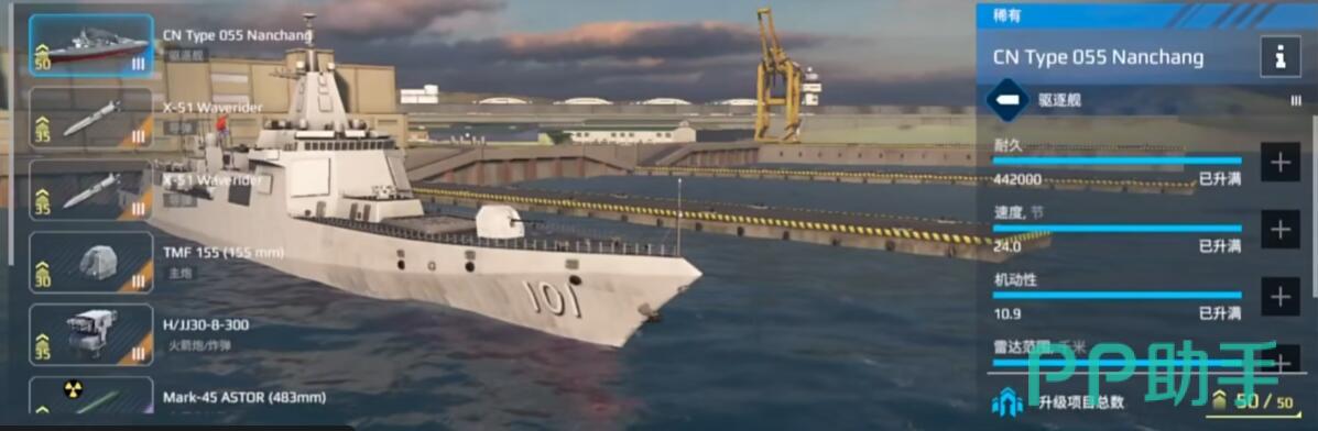 均衡万金油型:自然是六边形战士055,堪称综合性能最强,防空导弹拦截率高,主炮、反舰、防空三系均衡。推荐带鹰击-21、红旗,遇到潜艇切鱼-8反潜。升级先点血量强化,能扛过第一轮集火就有翻盘资本。资源优先级可以参照血量强化>防空拦截率>鱼雷装填。