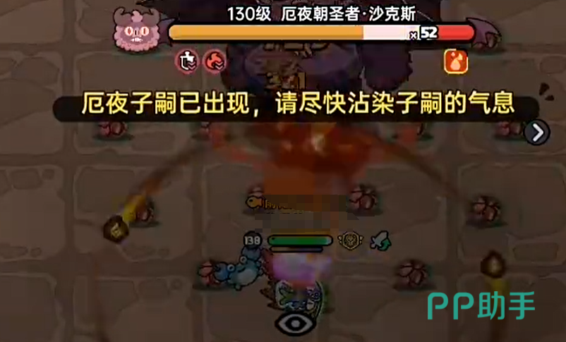 再次,战斗环境也很有特色,BOSS位于落日荒漠,场所较为黑暗,玩家会获得“幽暗恐惧”debuff,层数达到100时会直接死亡。并且场上有蜡烛存在,点亮后可减少debuff层数,但BOSS技能可能吹灭蜡烛。