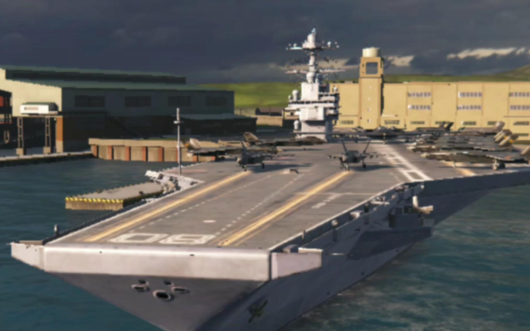 突袭特化舰,32节航速配合光学隐身涂层,15秒内完成舰载机弹射。四架F-35C实现快速制空,但需驱逐舰护航弥补防空缺陷。推荐3v3竞技场闪电战使用。