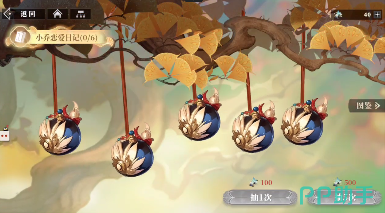 例如小乔的恋爱日记,这里想要收集小乔的物品。那就需要进行抽卡,抽卡道具叫做三山绘典,只需要100个就能抽一次。抽5次的话就要500个,大家可以在这个里抽到六种东西,分别是小乔的私人所有物,一旦全部集齐的话,就可以让你获得三张英雄的招募券。