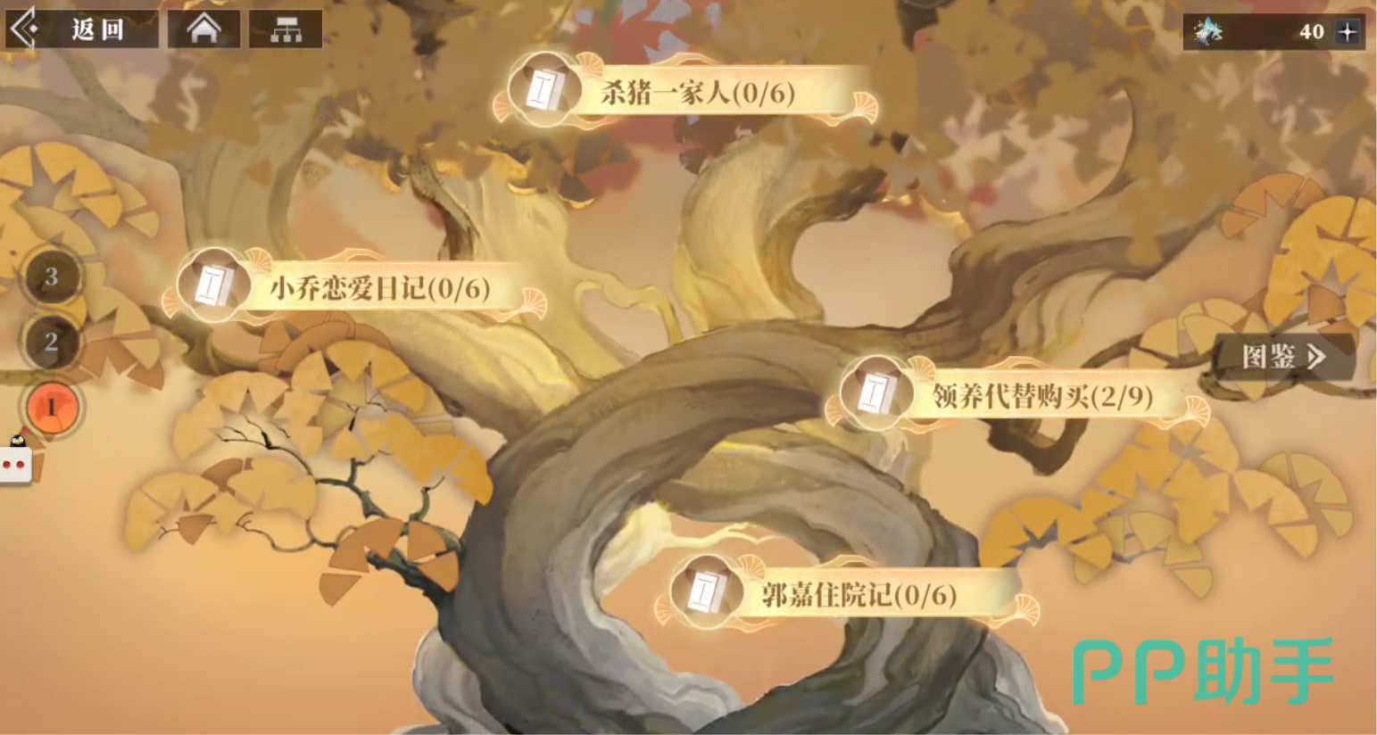 想要找到三千树的话,成功解锁之后就可以点击游戏主页左下角的三山里,进去之后从左数到右,第三个就是三千树了。所谓的三千树其实就是一种故事玩法,在可以在这里看到各种各样的剧情故事,点进去之后就可以看到某个角色的故事任务了。