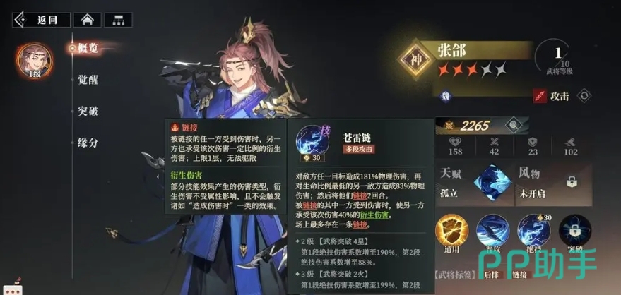 张郃他不仅是一位能够直击敌方后排要害的锋利箭头,更是战场上的一名混乱制造者,张郃的不同之处,在于他那能够直接深入敌后,对关键单位实施精准打击的能力,这一特性让他在战斗初期便能迅速打乱敌方的阵型布局,然而张郃的真正输出效果,并不仅仅在于他直接的输出能力,而是隐藏在他多段攻击技能之中的链接效果。