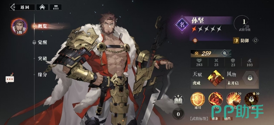 他一般在阵容中都是能够稳坐前排的,对于那些在游戏初期未能有幸将孙坚纳入麾下的玩家而言,也不必过于焦虑,因为孙坚的价值,绝非仅仅局限于开局的争夺,作为一位紫色武将,孙坚在后期的多上场空间,拥有全面而均衡的防御机制与卓越的控场能力,他的技能设计,巧妙融合了攻击与控制的双重元素,不仅能够对敌方整列造成输出,更在伤害之余,附加了牵制与弱化的双重效果。