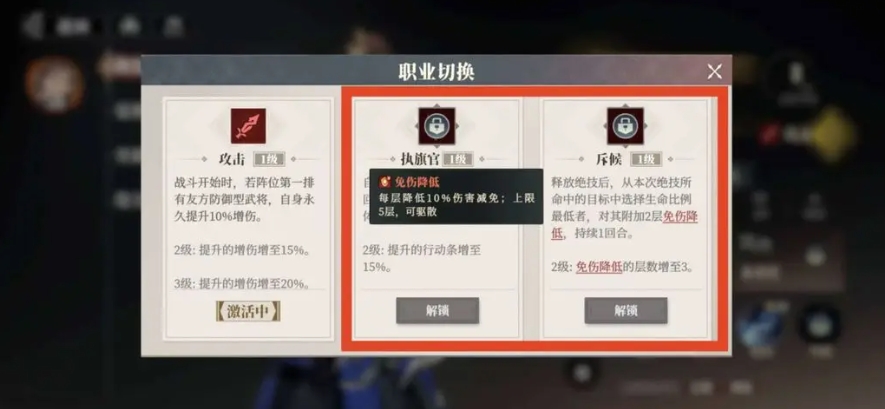 而张郃可以转职为斥候,这样则能在关羽之前施放大招,不仅触发了自身的天赋降免伤25%,还能额外获得斥候职业的30%降免伤,两重降免伤叠加,极大地提升了关羽的伤害输出,让关羽的每一次攻击都如致命一击,还有张飞可以转职为战狂,将防御的50%转化为攻击,让他在战场上既能抗又能打,刘备则是转职为将军,通过普攻邀战主C进行额外攻击,不仅提升了队伍的输出能力,还进一步强化了与关羽的连携效果。