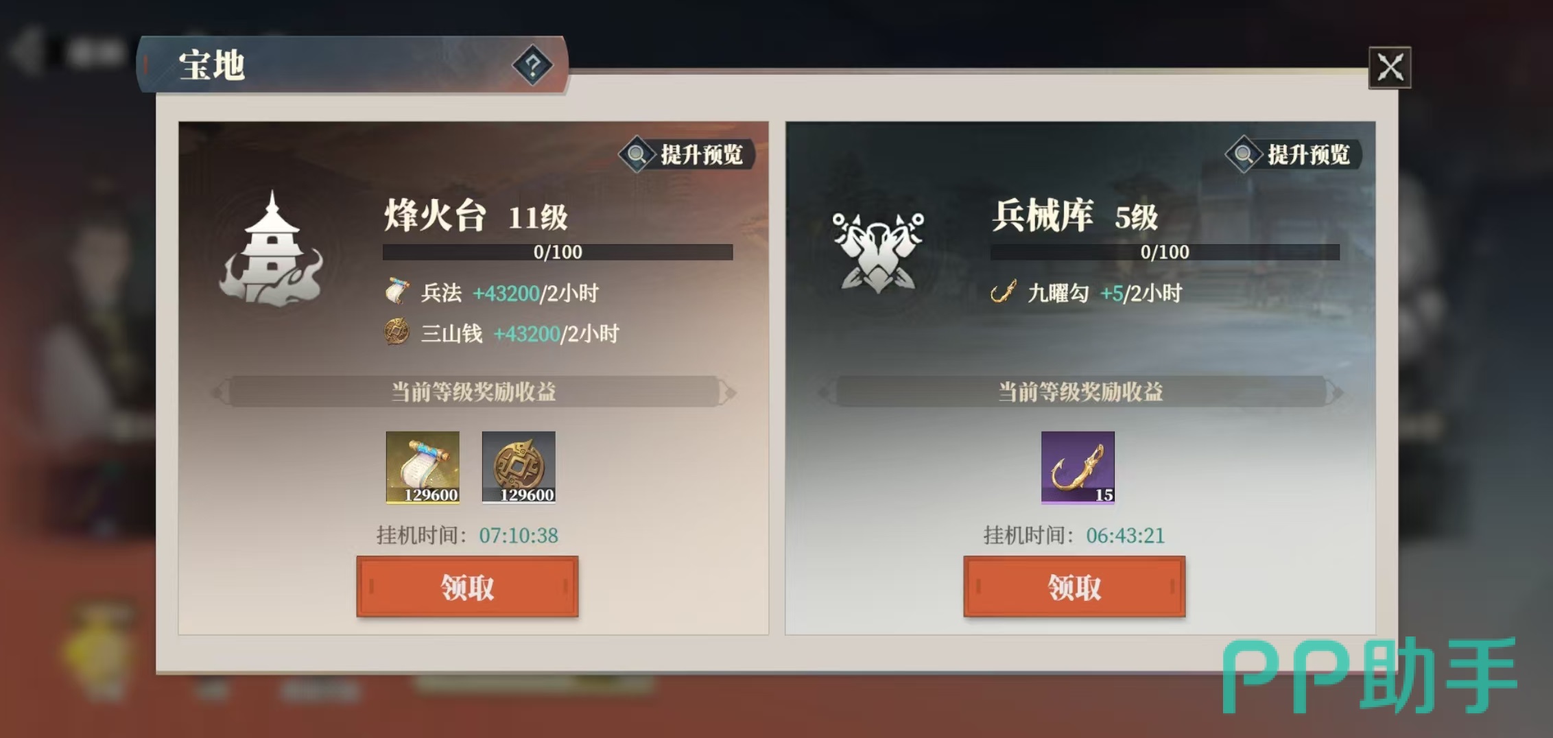 烽火台玩法挑战的层数是和宝地相关,烽火台层数越高,通过挂机获取的奖励也就越多,另外还和兵械库等级相关。大家为了获得更多的兵法和三山钱,也需要不断的往前推层数。