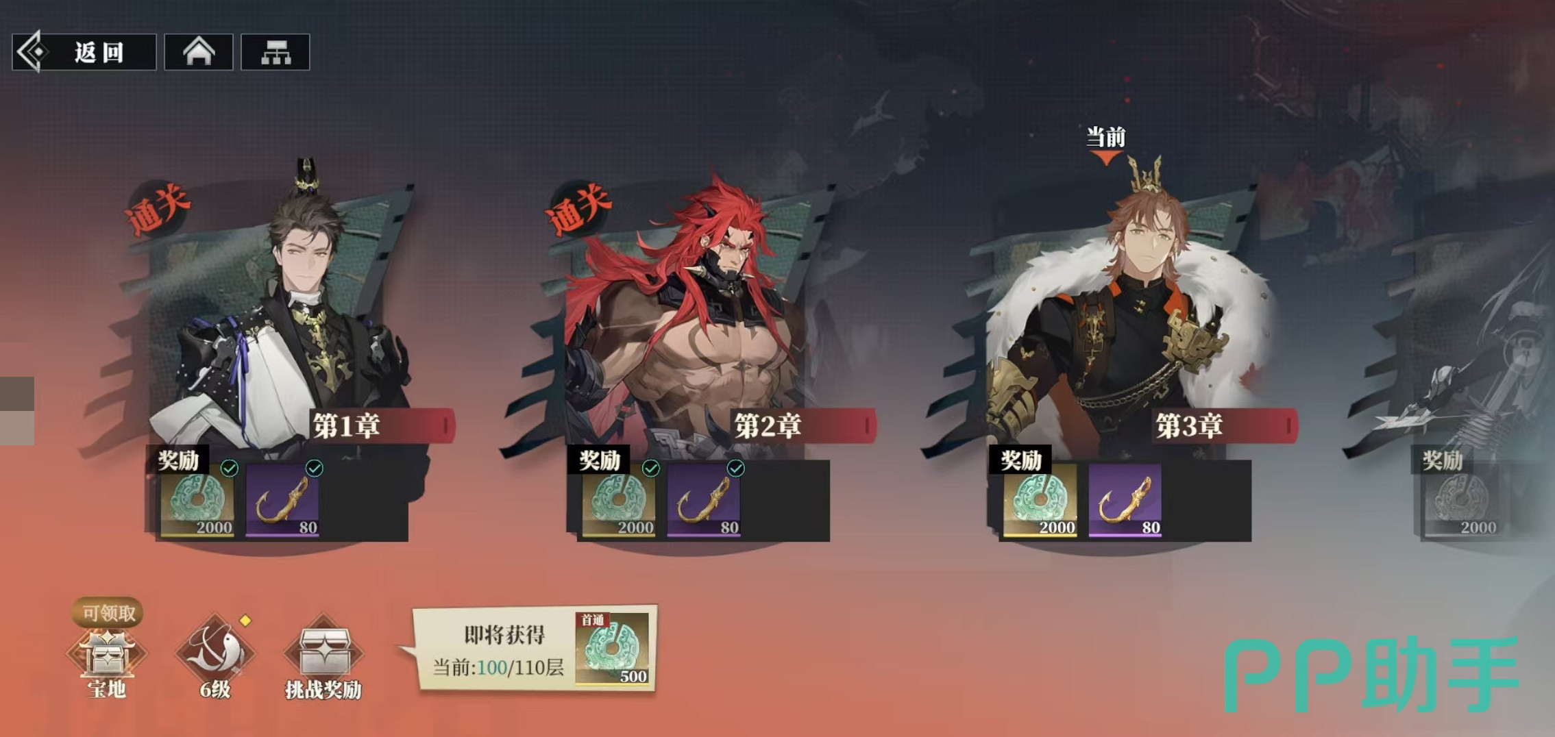 大家通过游戏的主页面,右下角可以直接点击进入到烽火台,烽火台分为不同章节,每个章节一共有40层,需要从第1层开始逐步开始战斗。例如在第1章打通了40层之后,就开启第2章,第2章打到80层之后,就开启第3章,往后依次类推。每个关卡战胜之后都可以获得首通奖励,主要包括兵法、烽火台经验、三山钱等。在通关一章之后,还有大量三山壁和九曜勾等道具奖励。