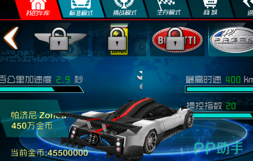 游戏里准备了各种让人跃跃欲试的竞速玩法,选车环节更是下足了功夫——360度无死角展示,从布加迪威龙到限量版法拉利,每辆豪车的细节都经得起放大镜检验。界面设计也相当抓人眼球,清爽利落的UI让操作变得特别顺手。这游戏不光跑起来爽,看着也够养眼,绝对能让赛车迷们过足瘾。