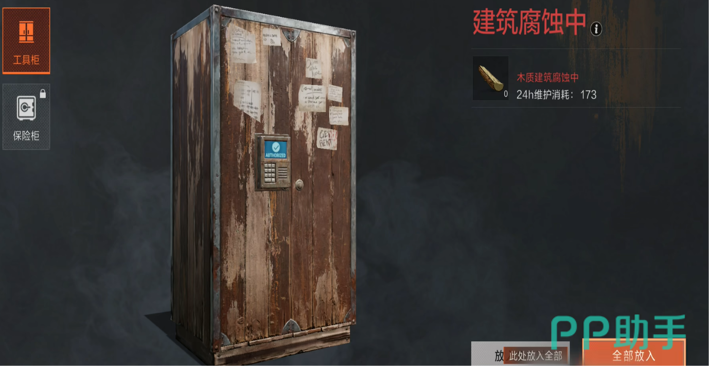 另外大家也要管理一下自己领地建筑物的权限,例如将其毁坏或者进行修复。这时都可以在工具柜中进行一键修复或者摧毁,甚至可以更改成为其他人的所有物。然后大家想要制作工具柜的话,需要耗费多达1000个木头,没用的话就可以努力去找一下。