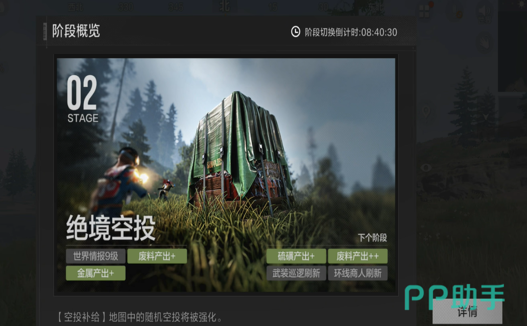 并且游戏到了后面的话还会出现包围圈,并且在某一些地方随机出现大量的天灾或者导弹。这时玩家们就要往可以生存的地方靠拢,并且在游戏结束之前要彼此厮杀。最终存活至最后一刻的玩家,那就可以获得整场比赛的胜利。
