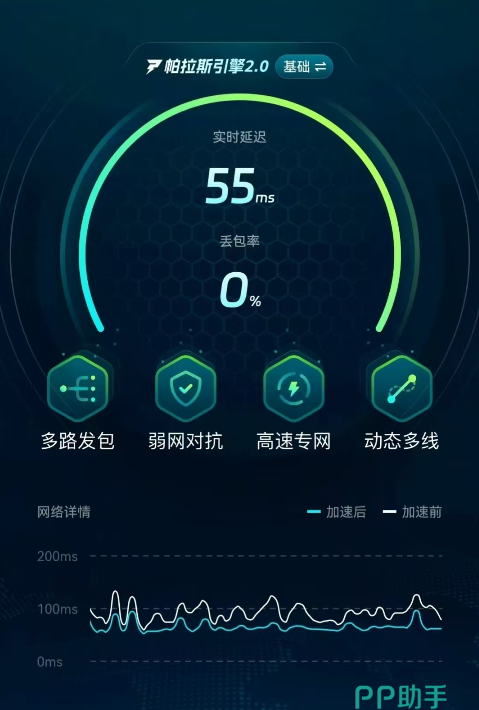 在成功开启以后,不仅能去实时追踪了解当下的网络状况,更是会通过线性图的形式为用户清晰展示波动情况,遇到了拥堵节点等问题时,它也会自动来匹配切换合适的节点哦。