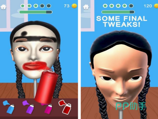 这款游戏以捏人物的面部进行设计,也能帮助你在手机游戏当中体验,陶瓷雕刻人物头部,所带来的独特之处。精美的3D画面以及游戏中,所具备的很多技能,帮助玩家足不出户的,根据里面所提供的人物图片来捏出不同的人物形象。无论是脸型还是五官的打造以及发型等,这游戏都是由你来完成的,要尽量的与原来的图片保持一致。