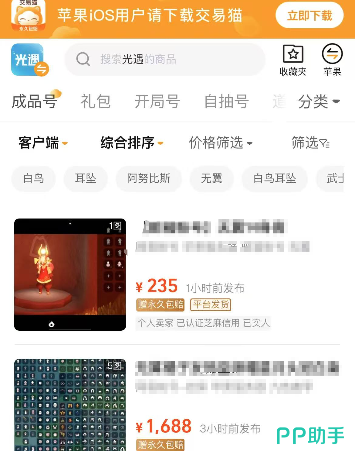 以上就是关于光遇账号交易软件推荐的全部内容了,交易猫上面光遇账号特别多,交易的时候各方面都有保障,流程简单又高效。找账号也方便,搜索筛选功能很强大,售后也很完善。有需要的小伙伴们抓紧去点击上方的链接去下载体验吧。