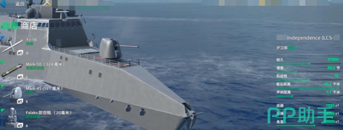 LCS-3沃思堡号:特色是自带反潜直升机,主炮射速0.8秒/发(奥托76型),适合多线操作玩家。防控略显少了,可以2个防空槽装弯曲导弹(拦截率60%),需手动切换目标保命,遇到飞机群建议开热诱弹跑路。