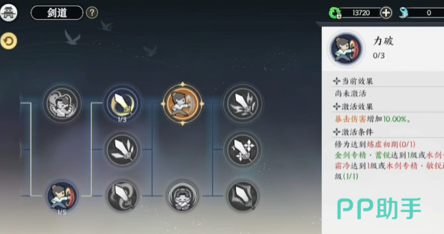 力破天赋可以提升对敌人造成的暴击伤害,该天赋对基础攻击有提升效果,在同等境界条件下,角色攻击力会更高,是喜欢走暴力输出路线玩家的不错选择,在前期刷怪和推图时,较高的攻击力可以更快速地消灭敌人,武道巅峰天赋任何武器都能轻松上手且进步神速,天眷之人可增加机缘属性,让剑修在探索、副本等玩法中更大概率获得更好的奖励,有助于获取剑修所需的资源、装备等。