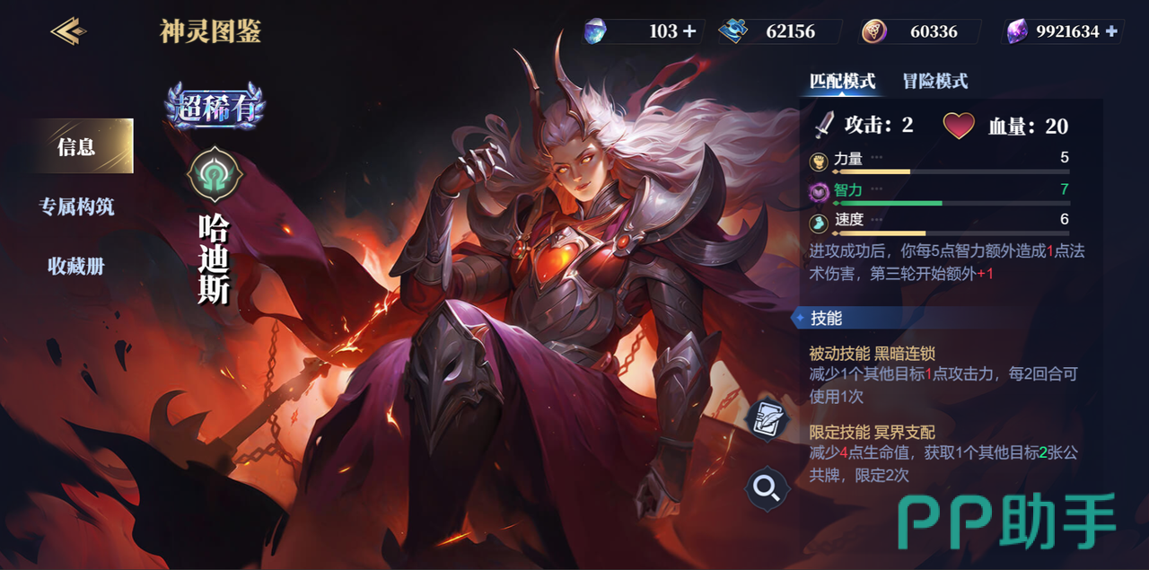 那么以上就是关于诸神竞技场游戏,哈迪斯介绍的内容,如果对于这个角色感兴趣,可以在游戏中来选择它进行使用,这个角色还是非常不错的,可以体验到刺激的战斗内容,并且还有多种丰富的技能组合以及流畅的剧情啊,都可以让玩家们更好的融入其中。