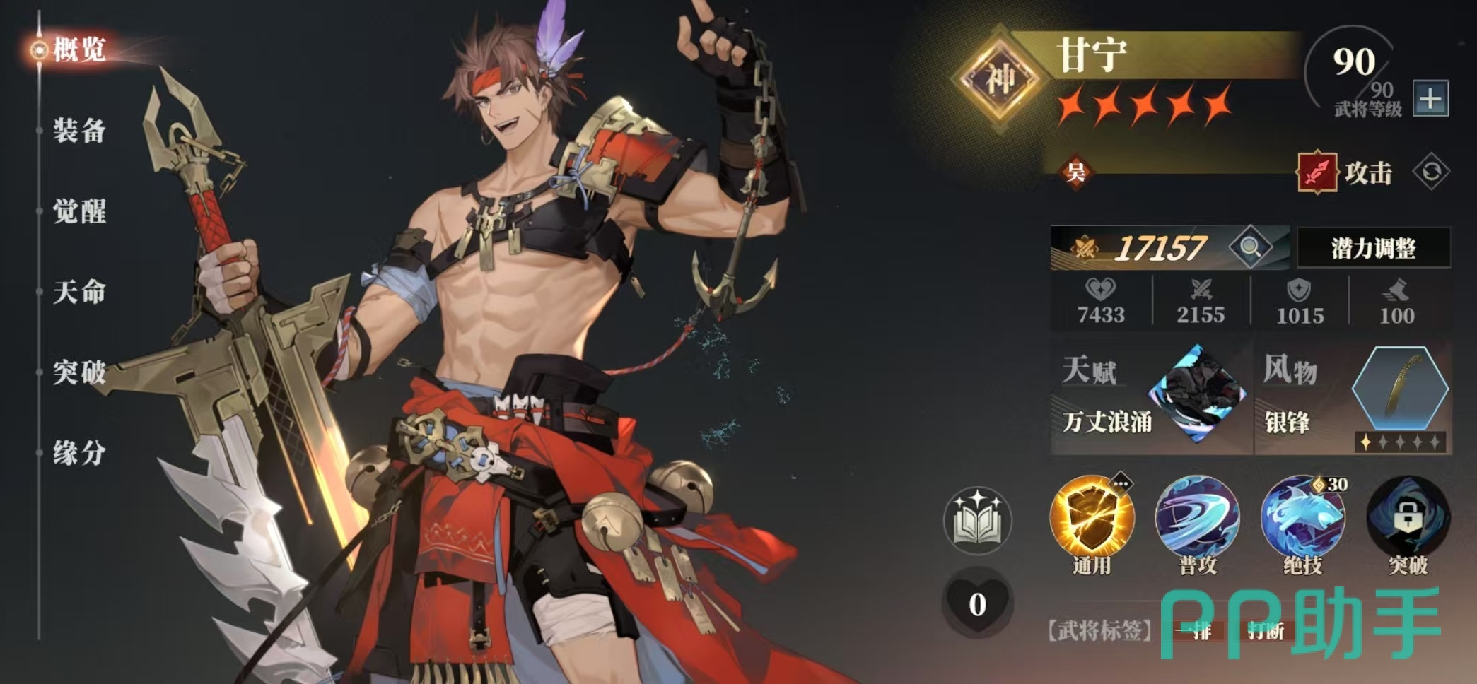在阵容搭配的时候,小编推荐大家配合上甘宁、曹操、蔡文姬,这样4人就可以组成一个很不错的小队,另外两个可以视情况去选择。甘宁每个玩家都可以很轻松入手,曹操更是直接就能获得,蔡文姬的培养也比较简单,再加上孙开朗,这一套阵容平民玩家就可以毫无压力的养成起来。甘宁有着不错的横排伤害,曹操在单体输出方面也很突出,在输出方面绝对不会低,很适合大多数平民玩家开荒时选择。