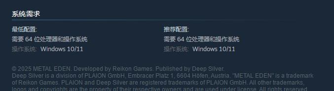 如果想体验这款游戏,那在配置方面就需要满足。需要64位处理器操作系统没有太多的限制,可以选择windows10或者11,其他配置方面,官方没有公布,但玩家只要满足I5以上的CPU,显卡只需要1060或者同等性能的AMD显卡,容量大概预留50G,基本都可以流畅运行了。