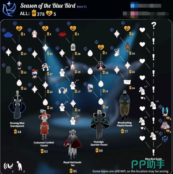 游戏活动任务细节,附带有超级大蜡烛,玩家完成了首个青鸟季的任务,就可以一次性地获得十枚白色蜡烛,以及八枚季节蜡烛,不止如此,在玩家完成到第三个任务之后,游戏还会开放绝版外观的试穿,例如白鸟发型等等,玩家可以逐一体验哦。