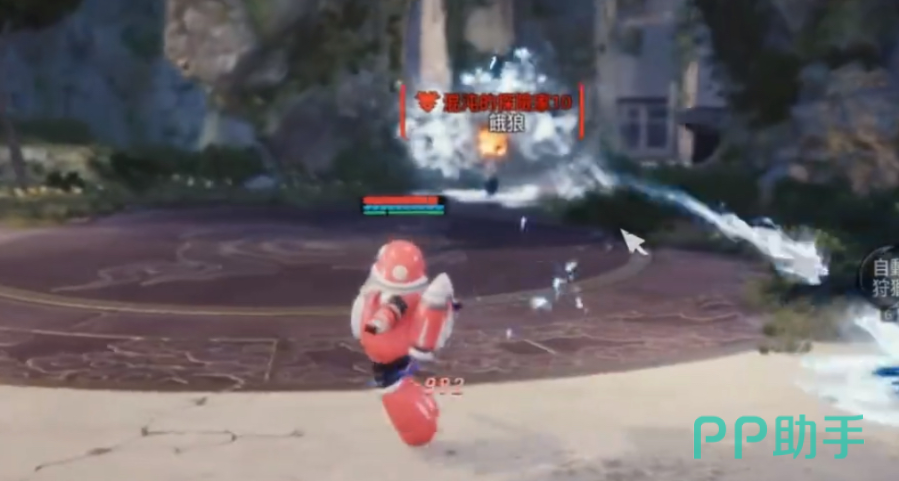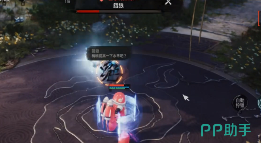 在饿狼上台子之后,就会立即向玩家的发动攻击,此时小伙伴们千万不要急着迎战,因为他先手会打出两个攻击技能,大家需要先把这两个技能给躲掉,再正式与他开战。第1个技能是几道剑气,会不停的追踪小伙伴们,大家只需要跑动一段距离即可,第2个则是一个aoe技能,玩家们需要卡好极限距离,因为这个技能的伤害范围极大,如果躲得不够远,就会受到大量伤害。