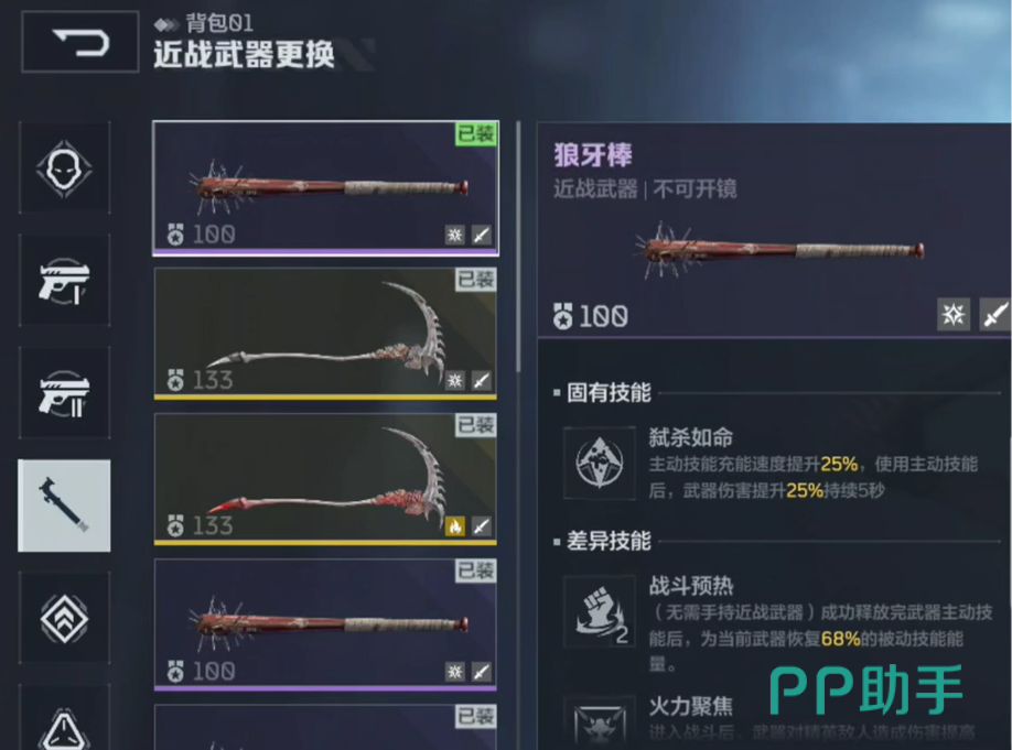 然后狼牙棒也有自己的技能,它的技能叫做嗜杀如命。提升自己主动技能的充能速度,并且用了之后可以增加伤害,所以是一个越战越猛的武器,而且冷却时间又短。另外还可以进行战斗预热,当你用完技能后就可以恢复被动的伤害以及效果。另外当你打一些精英怪物时,提升的伤害会更高。