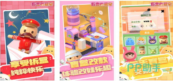 在本作中大家都会化身盲盒收藏家尝试打开各种盲盒,纯纯的开盲盒感觉带来激动人心的快感,各种改版盲盒和稀有盲盒坐等大家解锁,甚至还有二手盲盒的交易系统可以让大家自由买卖,玩法很简单只要点击盲盒就可以拆开,零氪金也可尽情享受打开盲盒的快感哟,追求刺激性的盲盒爱好者不妨化身盲盒收藏家。