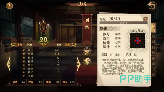 1、刘备,这是该游戏非常核心的角色,是十分推荐大家升迁为群雄角色的,而该武将也比较特殊,他的身份是固定的,不能选择其他的转职,装备上面,比较推荐大家先考虑剑,盾,甲这些比较基础的装备,如果幸运能拿到铁鞭,建议大家优先使用,这样能提升他的综合战力。