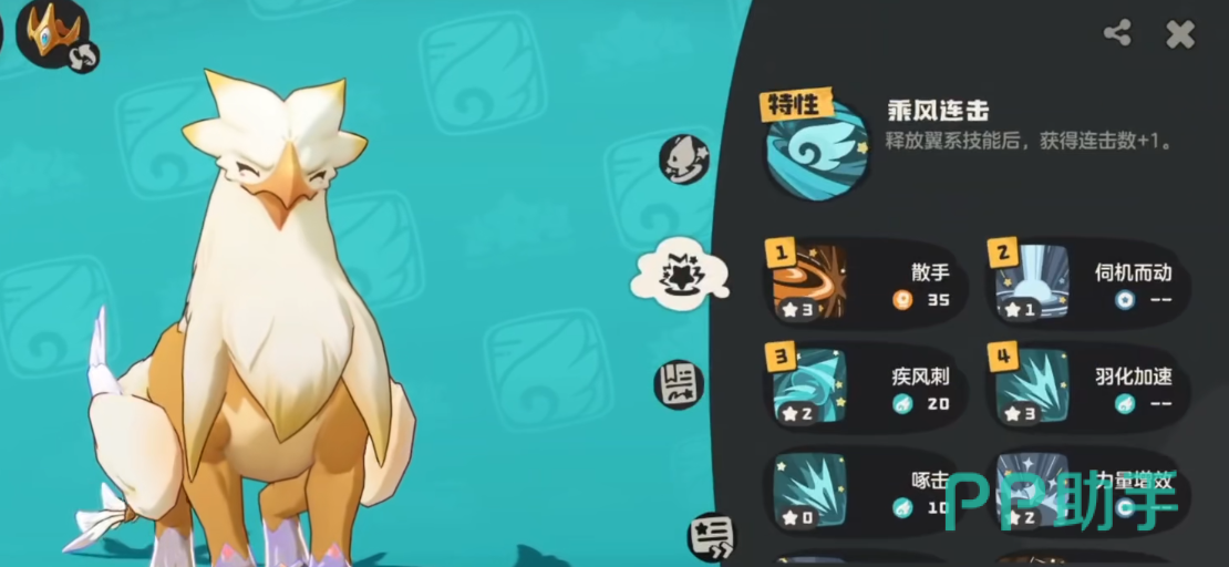 皇家狮鹫的3维比大多数PVP向的主C都要高,151的攻击,125的速度,体力也不低。特性是释放翼系的技能后获得连击数加1。因此技能搭配建议用散手、伺机而动、疾风刺、羽化加速。