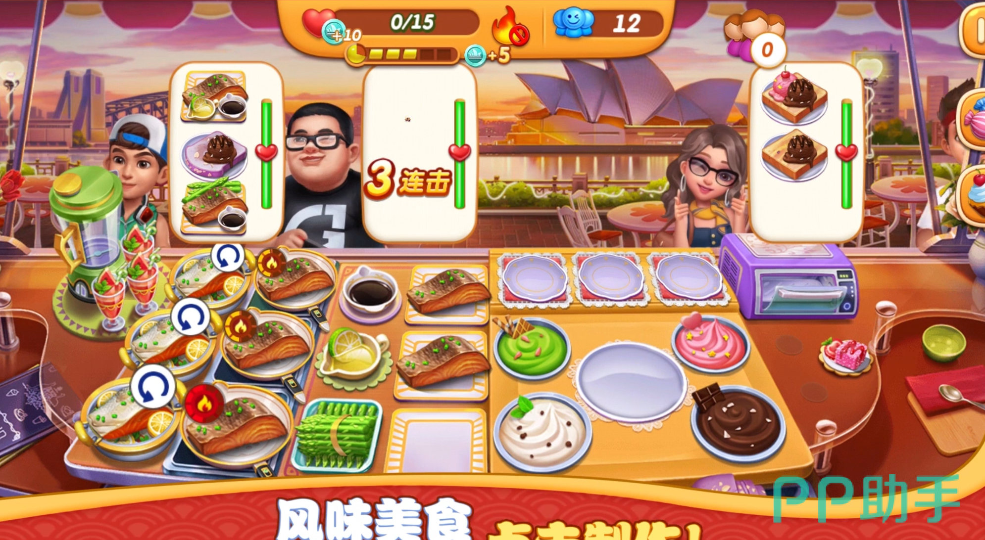 一款非常值得一试的做饭模拟经营手游,玩家的任务就是根据每天顾客的口味来制作美食,任务完成之后就会获得金币和钻石奖励。游戏中有非常多来自世界各地的不同美食,玩家需要通过通关的方式来解锁这些美味的食材,才能满足更多顾客不同的口味需求。游戏画面简洁,玩法丰富,玩家可以享受到做饭烹饪的乐趣,也可以体验到店铺经营的不易,每一步都是努力的见证,而这些成长的足迹最终会让你实现烹饪王国的梦想!