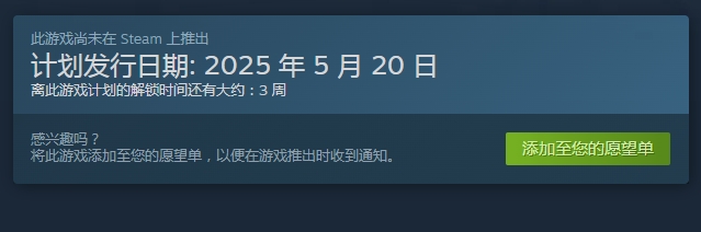 游戏上线的时间预计是2025年的5月20日,距离现在大概还有三个星期左右,玩家如果喜欢的话就可以关注一下。