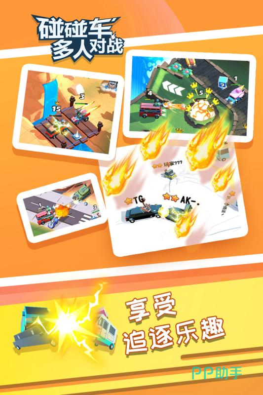 《碰碰车多人对战》这款碰碰车游戏中拥有超多玩法花样,从山丘到沙漠,每个卡通场景下都是用心的细节,而且游戏中所有实时匹配到的玩家都是真人,多种车型和皮肤随时都可以上场,不管是经典的小汽车还是消防车和餐车应有尽有,在对战中每一次碰撞都有极具代入感的特效和音乐,单点的操作设定让玩家沉浸其中。