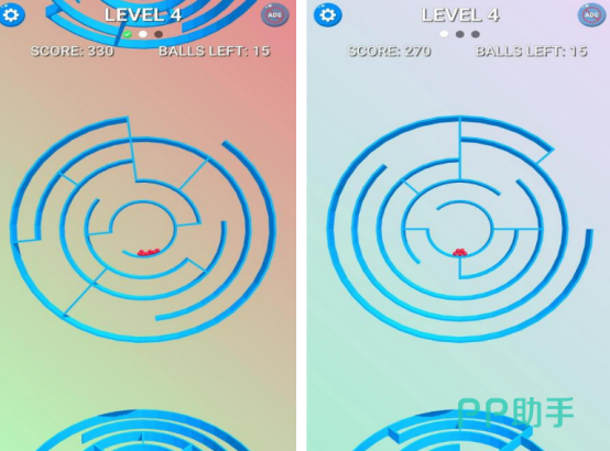 作为采用3d的风格,为大家所设置的迷宫游戏,虽然里面并没有人物,而是以各种颜色的球球为主,但如果能通过不断旋转迷宫的方式,将球球顺利的收集到杯子里面,你就可完成挑战。由于游戏中所设置的迷宫类型不同,所以在每次闯关的时候,想要将杯子里面挤满各种颜色的球球,也需要你在玩的时候,根据每个迷宫所设计的内容来转动。