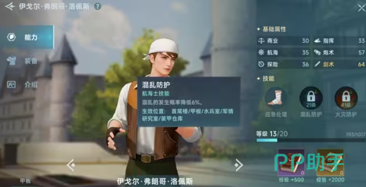 伊戈尔职业为佣兵,他的“混乱防护”十分适合白刃战玩家,因为我们在白刃战冲向敌人的过程中不慎受伤,是有概率触发混乱状态的,混乱状态会大幅度降低己方的攻击和防御能力,对于接下来战斗十分不利,而伊戈尔的该技能可以有效防止混乱的发生,搭配上军情研究室混乱群防3%,还能再有效降低混乱发生的几率,他的“火灾防护”适合跑商玩家,可以搭配防火参考使用。