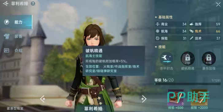 菲利希娅是一位炮兵玩家必备航海士,她会在我们击败梅芙后加入我们的队伍,能让我们所有炮弹破帆的概率提升5%,如果玩家玩炮船,可以给她搭配上高级指挥官这一职业,再搭配上链弹炮,来提升战斗效果。
