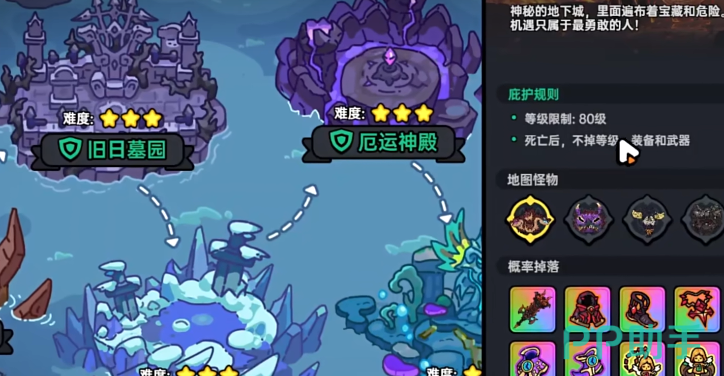 在这款游戏中玩家能够同时游玩到地牢游戏以及冒险pvp的玩法,玩家在游戏中将会出生在一片新手保护地,在这里玩家能够避免到别的玩家以及怪物的伤害,同时新玩家还有一段时间的护盾帮助角色发育。