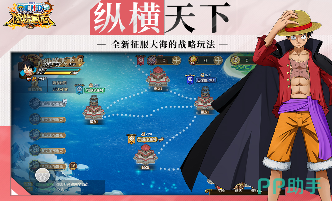 邂逅众多熟悉的动漫人物,每位伙伴都具备专属的战斗特性,以及成长路线,通过持续培养,打造无坚不摧的冒险团队。浩瀚的海洋地图中,隐藏着无数秘境与珍稀财宝,等待您扬帆探索。创新的战术对抗机制,要求玩家洞察对手弱点,巧妙组合不同能力的船员,施展相生相克的战略技巧。