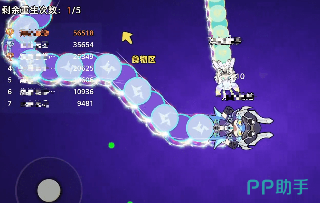 不过需要在吞食过程中,自己的头若碰触到地图边界获其他玩家的蛇头、蛇身,会导致我们瞬间死亡,每人每局会有5次复活的机会,不过在复活后会损失一定的分数,影响我们的排名。
