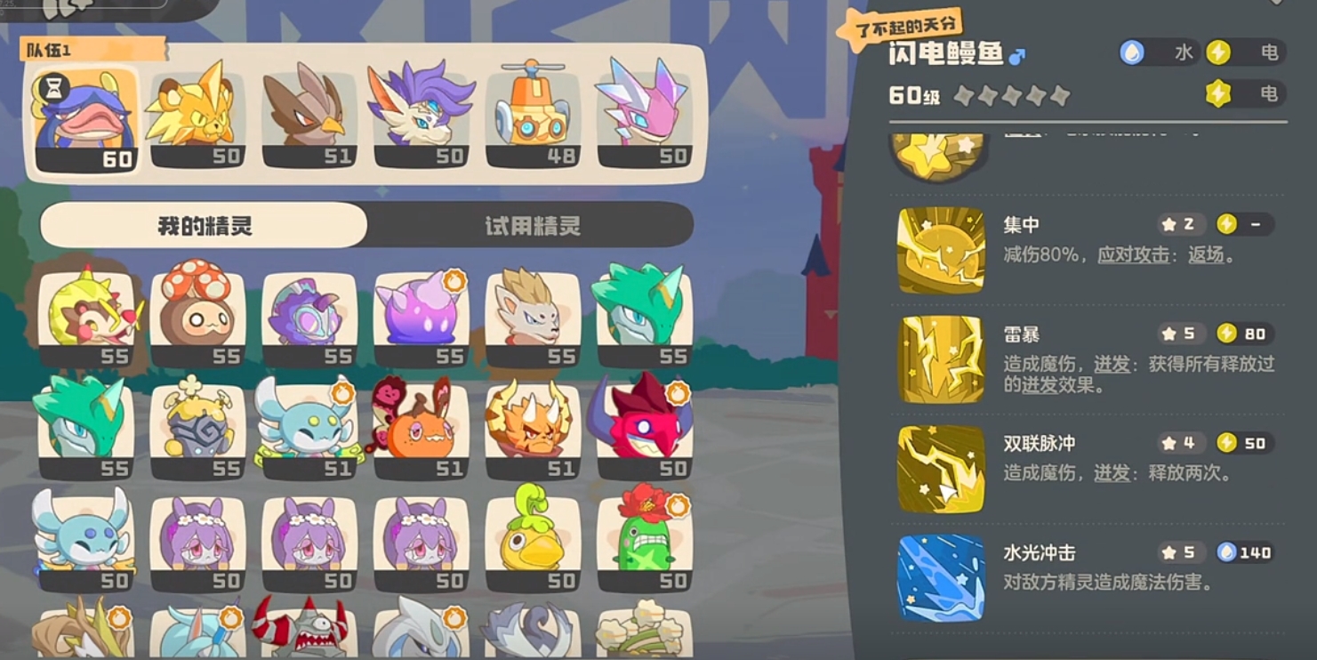 该阵容的表现还是很不错的,主要是通过闪电鳗鱼、星光狮子等精灵的雷暴技触发迸发,叠加电流刺激的威力增益,形成技能释放到迸发加成再到爆发输出的一整套流程,让自己能快速去打出爆发伤害,其中锤头鹅的虚假破产可强制对手换宠,这样就能有效的打乱敌方战术,而帕帕斯卡的传动可调整出场的顺序,这样就能让各位去快速应对不同阵容体系。