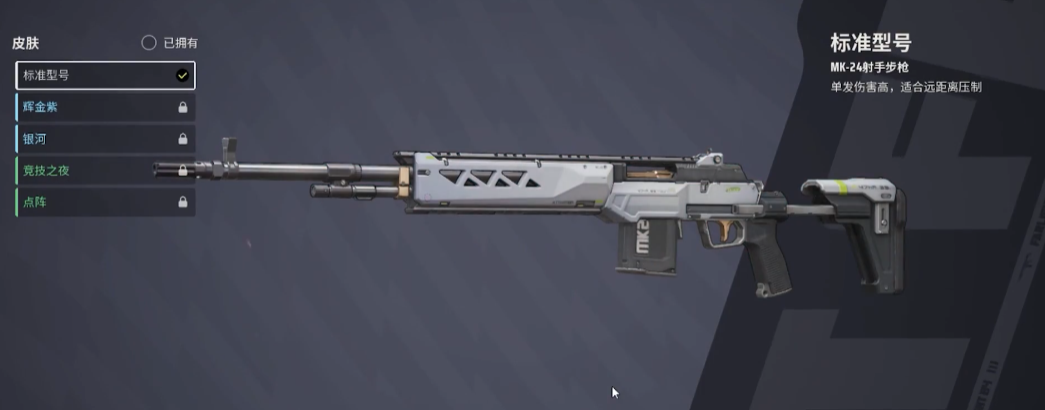 1、MK-24,该武器拥有高射击速度以及低后坐力的优势,在中远距离点射的情况下手感非常的好,稳定性比较高,能给敌方带来持续的压制效果,是相对比较好上手去使用的一把狙击枪。